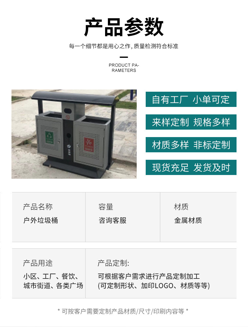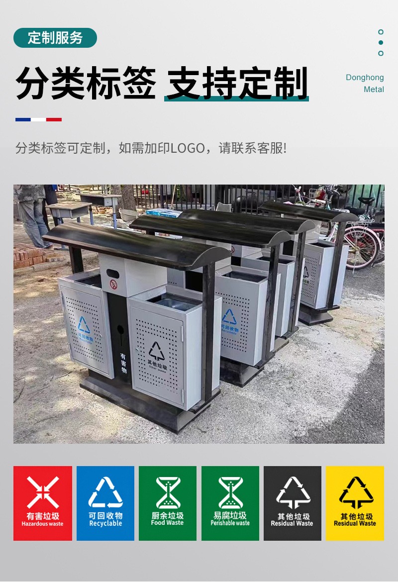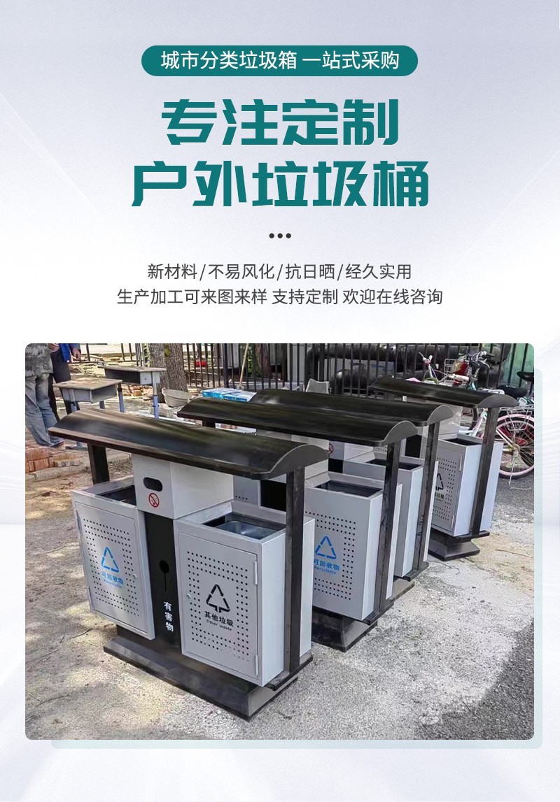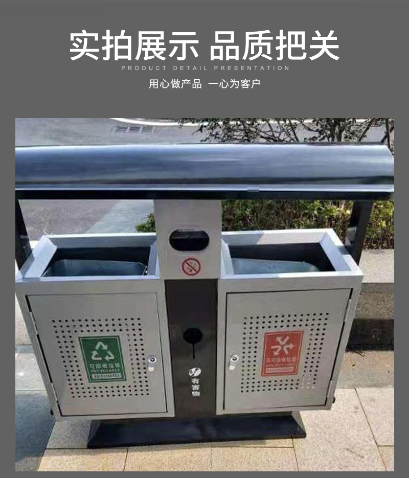 鍍鋅板大號環(huán)衛(wèi)垃圾箱 室外雙桶分類垃圾箱 街道小區(qū)公共垃圾箱適用于小區(qū)、工廠、餐飲、城市街道、各類廣場、企業(yè)單位、花園、公園、學校、碼頭、風景旅游區(qū)等公共場所,可按客戶的需要定投產品尺寸、材質和印刷內容
