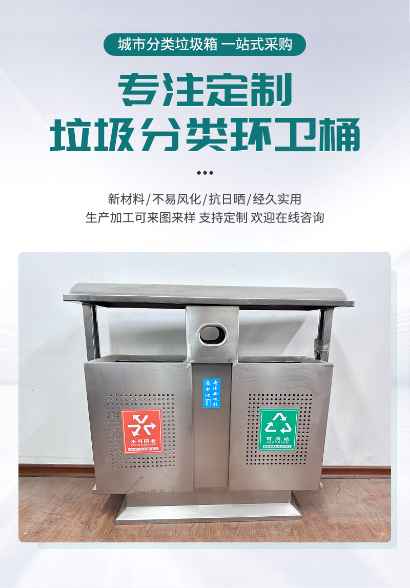 您當(dāng)前的位置:首頁 / 產(chǎn)品中心 / 環(huán)衛(wèi)戶外垃圾箱/桶系列 / 公園景區(qū)干濕不銹鋼戶外分類垃圾箱